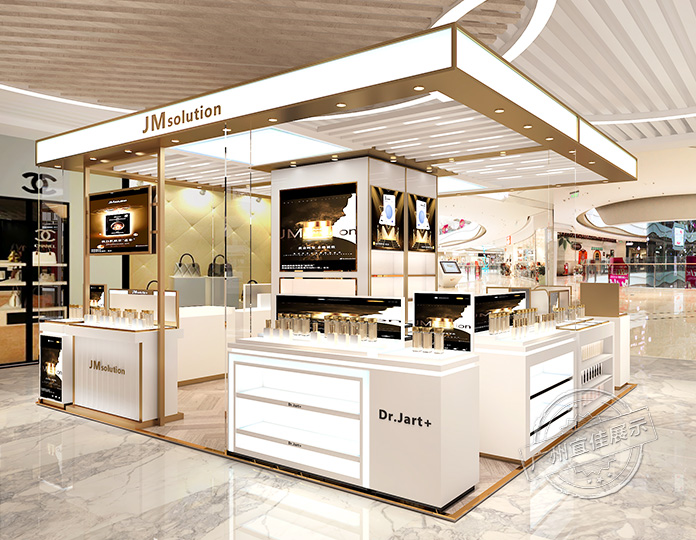 韓系風(fēng)格走的非常簡約的路線,綜合護膚品展柜都以白色烤漆為基本色,不銹鋼電鍍金色為輔助,簡約既視感,也讓人視覺非常舒適!