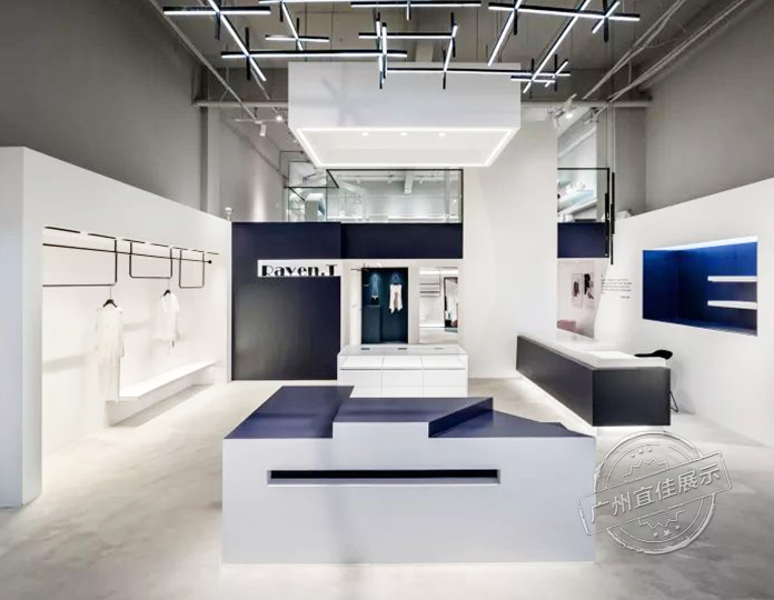 Ravent.T女裝店整個(gè)店面非常簡(jiǎn)單,設(shè)計(jì)中要滿足不同功能的同時(shí),還要將空間的行走動(dòng)線與服裝展示融合進(jìn)去。滿足服裝展柜展示,更衣,休息交流的功能,達(dá)到沉浸式購(gòu)物的效果。二層小童區(qū)的白色房子造型輪廓顯得格外突出。劃分整個(gè)二層展示與接待的功能,孩子們可以在這些造型中穿梭、游戲,這種直接具象造型的做法強(qiáng)調(diào)了孩子童真的本性,低飽和度的藍(lán)色和粉色調(diào)節(jié)了灰色的沉悶,使空氣中帶有一種自由性、純真性、夢(mèng)幻性。每個(gè)細(xì)節(jié)的雕琢都經(jīng)過反復(fù)考量和推敲。服裝展柜基于空間性質(zhì)和細(xì)部考量,從燈光、陳列到色彩配置,Raven.T在展示商品的同時(shí)始終注重購(gòu)物體驗(yàn),顯現(xiàn)出極高的品質(zhì)。
