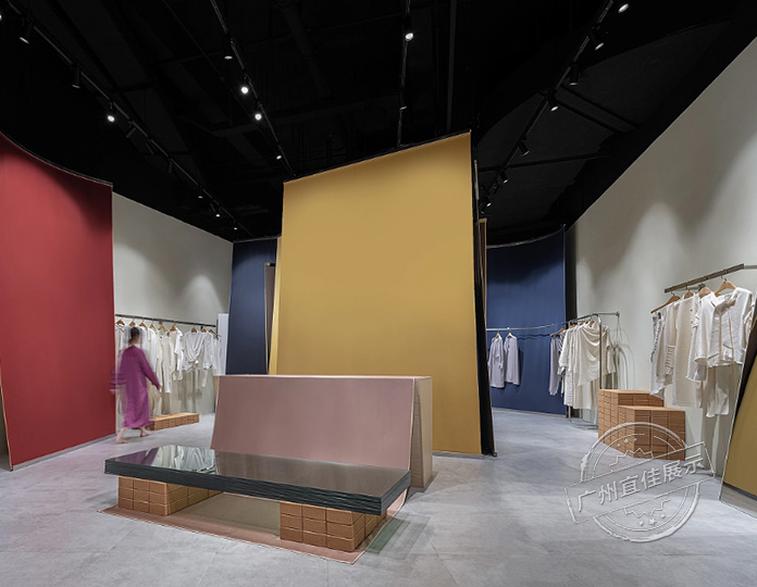 TU原創(chuàng)設(shè)計師品牌,以“簡潔優(yōu)雅”為品牌理念,此快閃店由成品瑜伽磚和青玻組合的中島,加上簡潔不銹鋼服裝展架組成,風格上不拘束,溫柔但也有力量,用簡單的構(gòu)造來實現(xiàn)較大的效果。