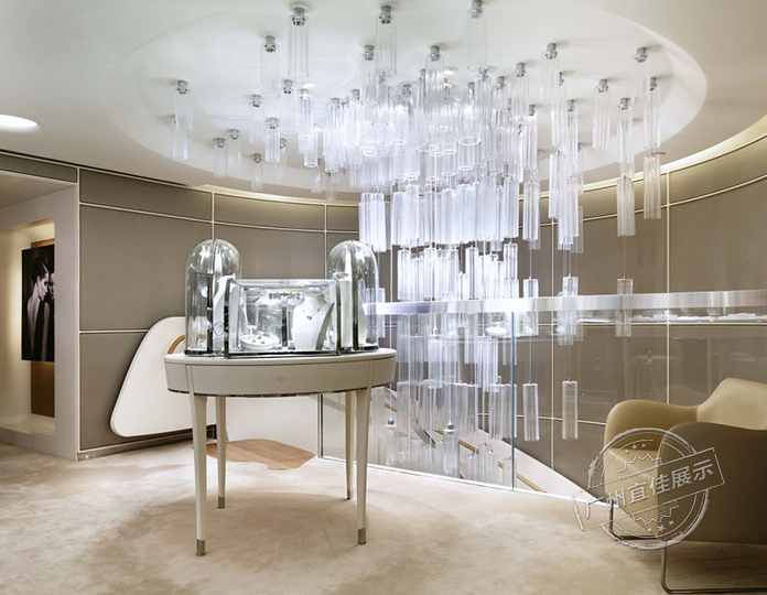 干凈純潔的白色珠寶展柜與暖霧金呈現(xiàn)時尚經(jīng)典的搭配。靈動曼妙的花草圖騰成為串聯(lián)空間的軸心,呼應梵克雅寶珍視自然的元素,整間店高雅神秘卻又溫馨舒適,值得細心探索并品味其中的美學。如果您也想要這樣的店鋪設計,歡迎聯(lián)系[宜佳展示]。